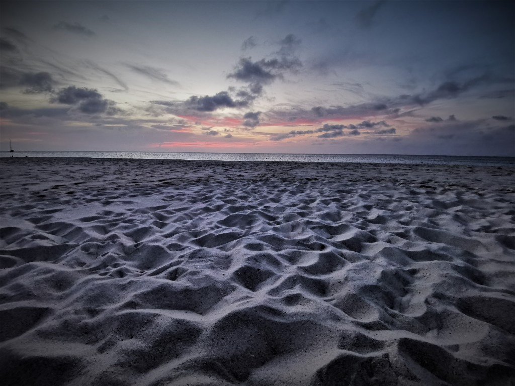 We bedankten de man die ons de tip voor de schildpad had gegeven, en gek genoeg kwamen we hem en zijn vrouw diezelfde avond weer tegen op Eagle Beach, toen we foto’s stonden te maken bij zonsondergang.