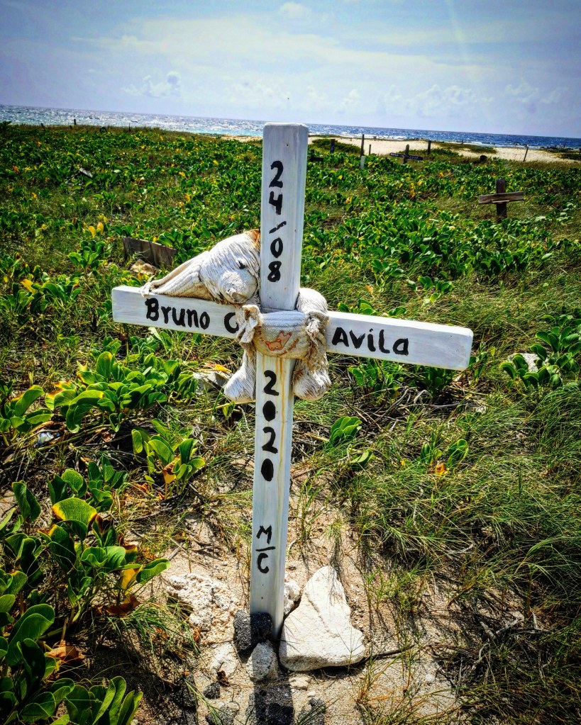 Het kerkhof werd rond 1924 opgericht door medewerkers van de olieraffinaderij van San Nicolas, maar tot op heden worden hier nog steeds huisdieren begraven en herdacht.  Wij hebben er een tijdje rondgewandeld, stilgestaan bij de graven van “Rocky”, “Tiger”, “Archie” en zoveel andere dieren die duidelijk heel graag gezien zijn geweest… het is een vreemde plek, je krijgt er een krop in de keel, het is zo’n droevig beeld maar tegelijk zo ontzettend mooi, die kleine grafjes in dat wit zand, met op de achtergrond het geluid van de golven.  2 witte reigers zwierven intussen rond tussen de stille graven.  Kippenvel.