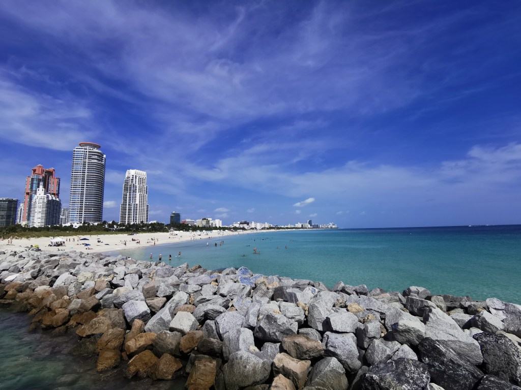 Vrijdag besloten we naar Miami Beach te gaan, ook wel de Amerikaanse riviera genoemd. Het ligt op een schiereiland en is eigenlijk een stad op zichzelf. Als je aan Miami Beach denkt, denk je misschien meteen aan het populaire South Beach, koosnaampje SoBe. Een lang, drukbezocht kunstmatig aangelegd strand langs een kalme groene zee. Achter dat strand loopt een lange, brede, slingerende boulevard… ideaal voor wandelaars, joggers en rollerskaters.