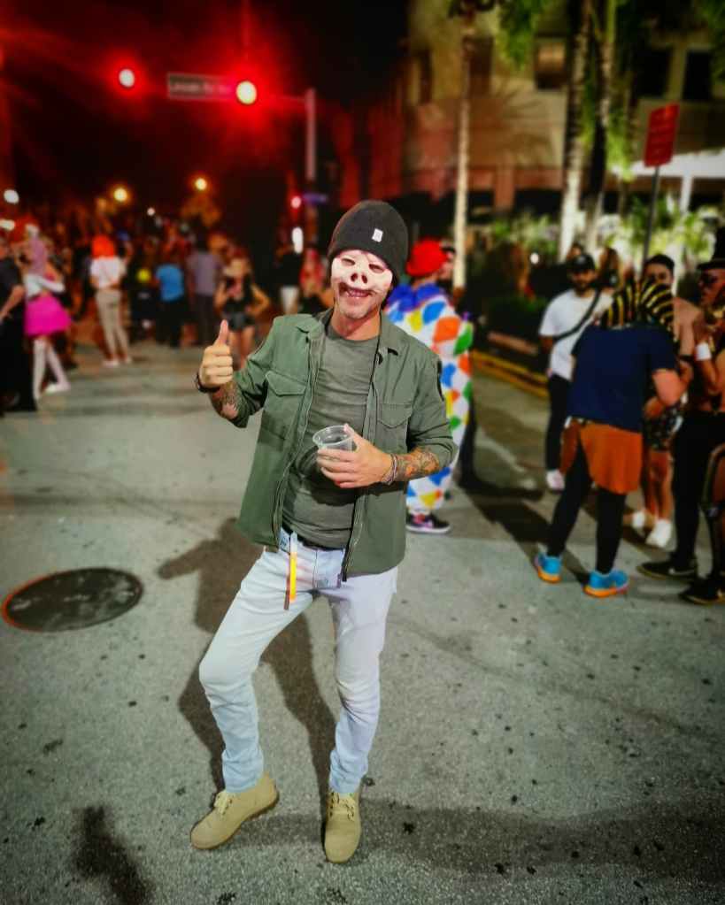 Van oorsprong was Samhain een Keltische traditie. Het kondigde het einde van de zomer en het einde van de oogst aan, én de Kelten geloofden dat op 31 oktober de poort naar het dodenrijk openstond. Om zichzelf te beschermen tegen kwade geesten, werden maskers gedragen, zodat die kwade geesten zouden denken dat deze wezens zélf uit het dodenrijk kwamen. Toen tijdens de grote hongersnood in 1845 miljoenen Ieren naar de USA vluchtten, brachten ze hun tradities mee en Samhain werd All Hallow’s Eve (Allerzielen), en later Halloween. Met de jaren groeide de heidense traditie uit tot iets heel groot, en dan bedoel ik écht groot… een feestdag waar overal naar uitgekeken wordt. Het leek ons op voorhand al leuk om Halloween te kunnen vieren in Amerika. Maar een outfit meezeulen voor die ene avond vonden we een beetje te gek. Tot een paar dagen geleden wisten we niet goed hoe we het gingen oplossen, want het werd ons al snel duidelijk dat als we helemaal niet verkleed zouden rondlopen, we heel erg uit de toon zouden vallen. Werkelijk iedereen leek zich voor te bereiden op 31 oktober. In Little Havana vind je “La casa de los trucos”, de oudste en bekendste winkel in verkleedspullen in Miami. Als je het daar niet vindt, vind je het nergens, gaan de geruchten. Sinds we hier zijn staan er elke dag lange rijen tot ver buiten de zaak. We waren benieuwd en hebben het erop gewaagd, in de veronderstelling dat de winkel groot zou zijn en ze voor de veiligheid slechts een beperkt aantal mensen binnenlieten. We hebben een uur gewacht en toen we dan eindelijk binnen waren zijn we vrijwel meteen weer buitengegaan. Ik kan me voorstellen dat ze hier inderdaad echt alles hebben, maar de winkel is klein en het aantal mensen dat tegelijk werd binnengelaten was echt veel te veel. Je kon letterlijk niet draaien of keren, laat staan iets bekijken of zelfs vragen aan het personeel. Echt niet te doen! Dan maar naar de Halloween Megastore, een gigantische (vermoedelijk pop-up) winkel op Lincoln Road in Miami Beach. Ook hier is het erg druk, en de vele lege rekken maken nog maar eens duidelijk hoe populair Halloween is, maar de drukte is te doen, en de keuze is nog steeds heel groot. Als je hier woont moet het fantastisch zijn om je elk jaar tot in de puntjes te kunnen uitdossen, maar omdat we nog verder gaan reizen, besloten we het te houden bij enkele kleine accessoires en wat griezelige make-up. Als we ’s avonds iets eten op Lincoln Road, waar het feest zondag zal losbarsten, zegt de ober dat hij nog meer volk verwacht dan andere jaren… omdat het de eerste Halloween sinds Covid wordt, zijn de mensen niet te houden, iedereen kijkt er zo hard naar uit.