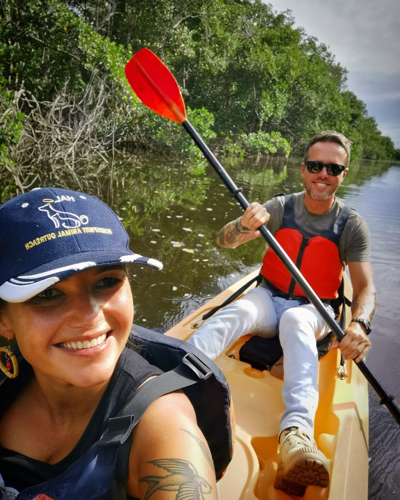 En dus stappen we met knikkende knieën in een kayak, op een paar meter vanwaar we die eerste avond twee krokodillen zagen. De jongen die ons helpt vertrekken zegt dat als we er eentje zien we “gewoon” maar 5 meter afstand moeten houden. We hebben twee uur tijd om op verkenning te gaan en het eerste stuk is met een knoop in onze maag en adrenaline die door ons bloed raast, vooral als we al na 20 minuten een grote kop en twee kille oogjes langs de kant zien liggen loeren. We varen er rustig langs en bedenken ons dat deze dieren ons als een bedreiging zien en bij het horen van een bootje altijd wel aan de kant zullen gaan. Twee uur later varen we helemaal happy en zelfzeker terug naar het startpunt, blij dat we uit onze comfort zone zijn gestapt. Het is waar wat ze zeggen: dat je af en toe eens iets moet doen waar je bang voor bent… het kan je wereld alleen maar verrijken!