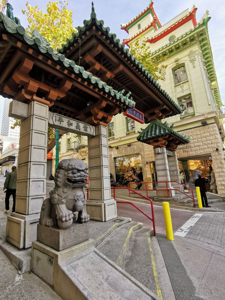 En zoiets nemen wij dus letterlijk. Op onze eerste dag besloten we op wandel te gaan om een beetje een indruk te krijgen van de stad. Vanuit ons hotel in Bush Street loop je iets verder Grant Avenue in, waar de imposante poort staat naar het grootste Chinatown buiten Azië.