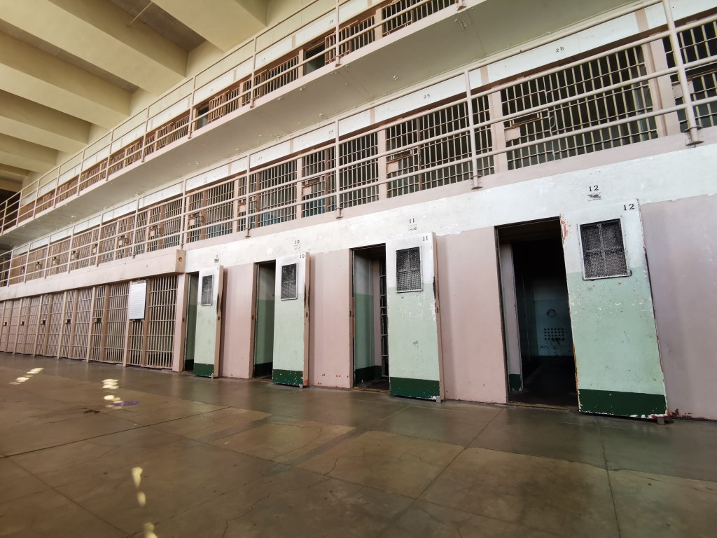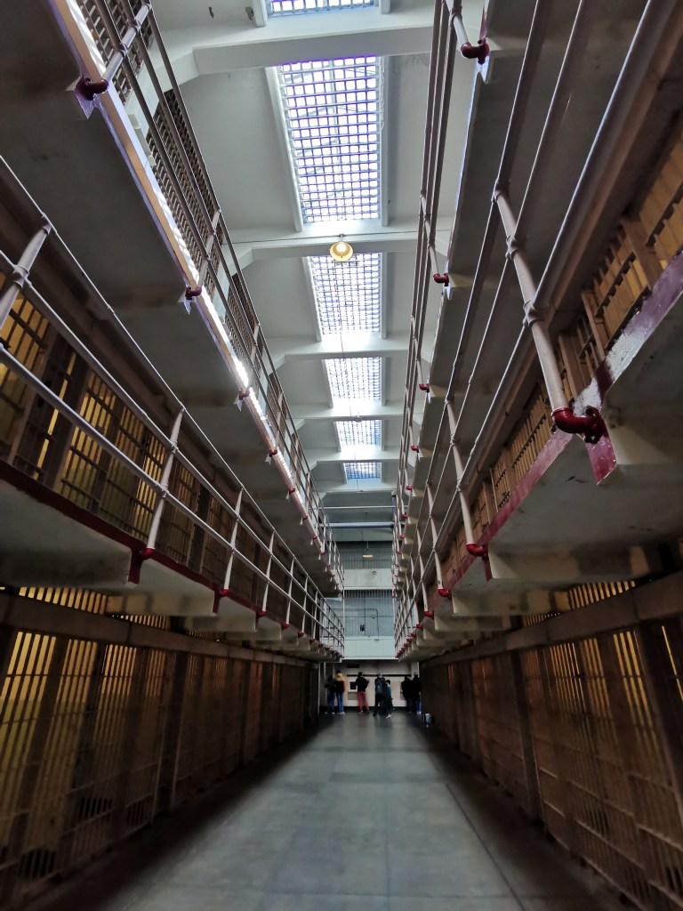 Op dit moment is het eiland een nationaal park en een belangrijke toeristische trekpleister, maar ooit was het helemaal anders. Je wordt met een ferry afgezet op het eiland en dan ben je vrij om er zo lang rond te lopen als je wil. Je krijgt een audio apparaat zodat je op je eigen tempo de gevangenis kan bezoeken en de nodige uitleg kan krijgen. Het is allesbehalve een saaie audiotour. Je hoort de echte stemmen van vroegere cipiers en gevangenen, geanimeerd met geluiden van dichtslaande cellen, rammelend bestek en tafels die omgegooid worden. Je ziet de piepkleine cellen, de isolatiecellen, de no privacy douches, het recreatieplein met nog de restanten van een baseballveldje… Alcatraz Island was de perfecte plek voor een gevangenis omdat het door de ligging en de sterke stroming van het water vrijwel onmogelijk was om te ontsnappen. Toch werden er verschillende pogingen gedaan, waarvan er uiteindelijk 1 gelukt is. Dit werd later verfilmd in “Escape from Alcatraz”. Nog geen jaar na deze ontsnapping werd Alcatraz gesloten. Bezoek deze plek zeker, het is een erg intrigerende plek, je voelt de beladen geschiedenis in elke hoek van het eiland hangen.
