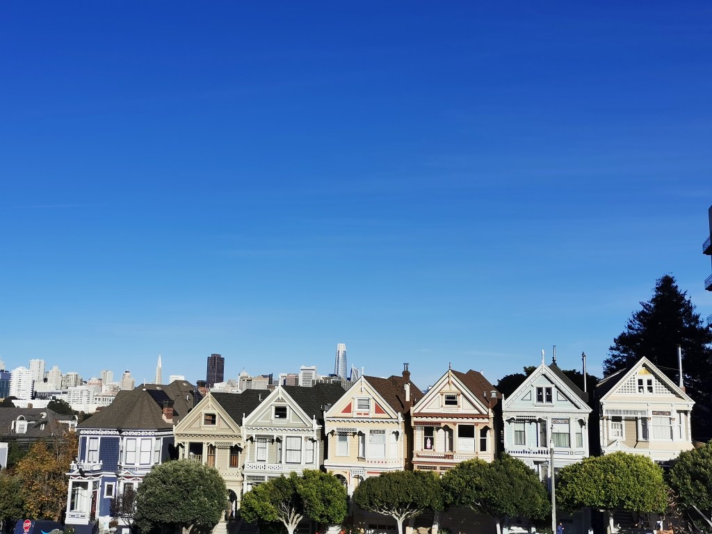 Het is namelijk één van de meest gefotografeerde locaties in de stad en kinderen van de jaren ’80 en ’90 zullen deze gekleurde Victoriaanse huizen zeker herkennen uit de intro van Full House. (Het echte huis uit Full House ligt hier een paar blokken vandaan, maar daar hebben we geen tijd meer voor gehad). Als je vanaf de heuvel in het mooie park aan de overkant naar de huizen kijkt, zie je de skyline van San Francisco erachter piepen, een fraai beeld! Wandel ook eens verder rond in de buurt, het staat er vol met prachtige Victoriaanse huizen!