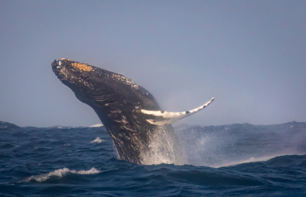 Terwijl de walvissen ons een show gaven door met hun vinnen op het water te klappen, hun prachtige staartvinnen te showen terwijl ze naar beneden doken om dan plots weer luid uitblazend boven te komen, bleef de boot het trio rustig volgen.