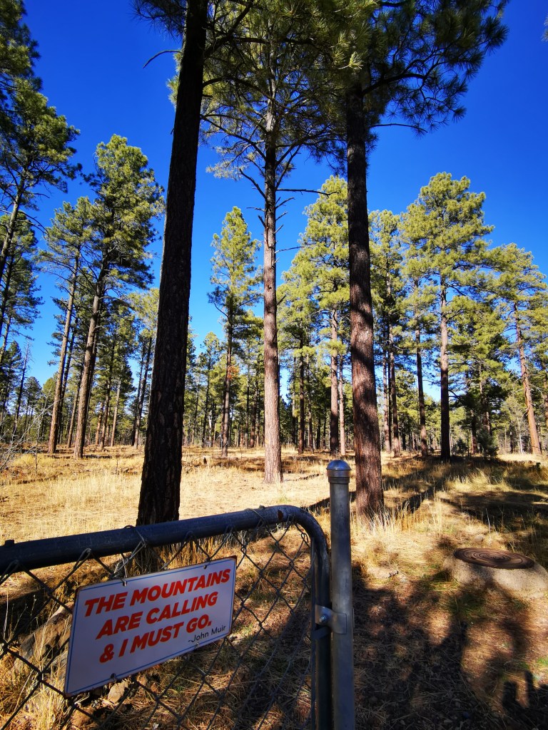 Op het einde van onze straat loop je zo het “Apache-Sitgreaves National Forest” in, waar je ook weer eindeloze en prachtige wandelingen kan maken. Best wel goed onthouden welke paden je inslaat, want de trails zijn niet altijd goed aangegeven. Wij maakten Hans en Grietje-gewijs pijlen met stenen en takken om zeker te zijn dat we de weg zouden terugvinden 😊
