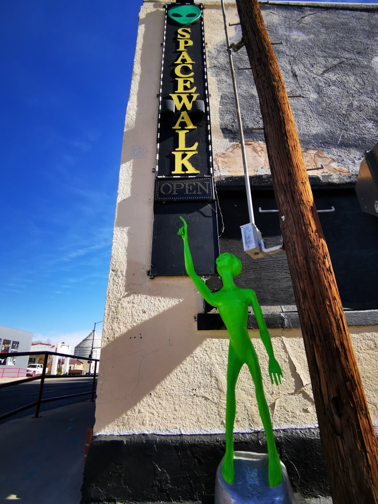 Op een uur en 20 minuten rijden van Carlsbad ligt Roswell… en daar kan je nu eenmaal écht niet omheen, zelfs niet als je niet in buitenaards leven gelooft! Al lijkt het ons een beetje absurd en verwaand om te denken dat wij het enige leven in het hele universum en daarbuiten zouden zijn.
