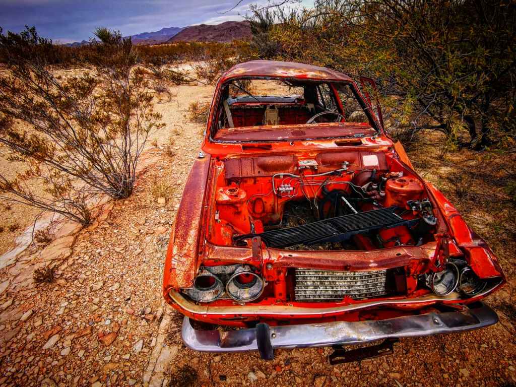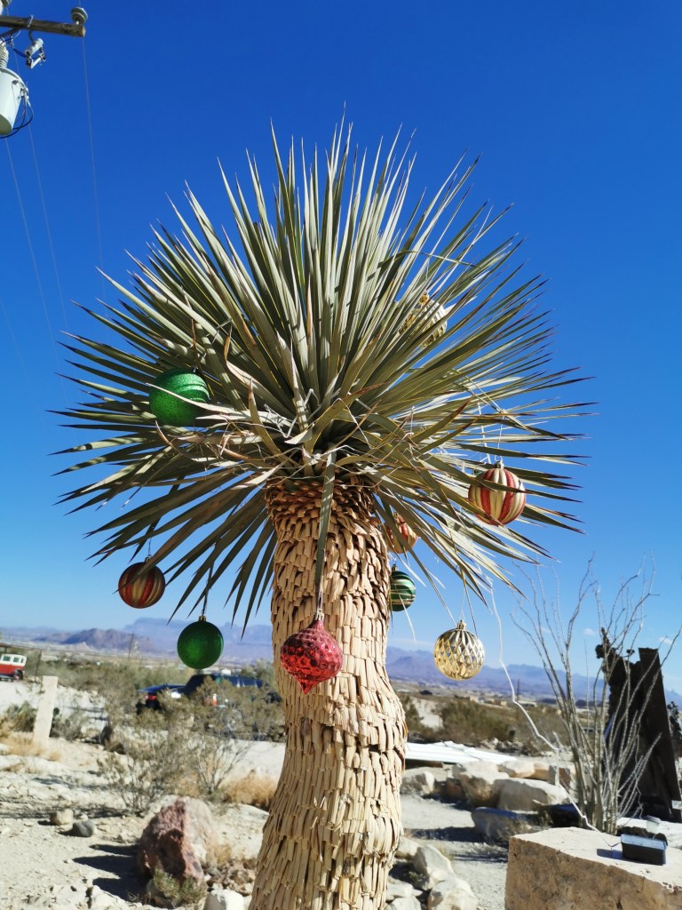 Joe bekijkt het leven zelfs letterlijk door een veel te grote roze bril en samen met Sue leidt hij ons met alle plezier rond op hun domein. Je moet weten dat er nog heel veel resten van het oude mijnleven te vinden zijn in heel Terlingua. Zo liggen op het domein van Sue en Joe zomaar een paar oude auto’s weg te roesten en ligt het er vol roestige blikjes, schroeven enzovoort.