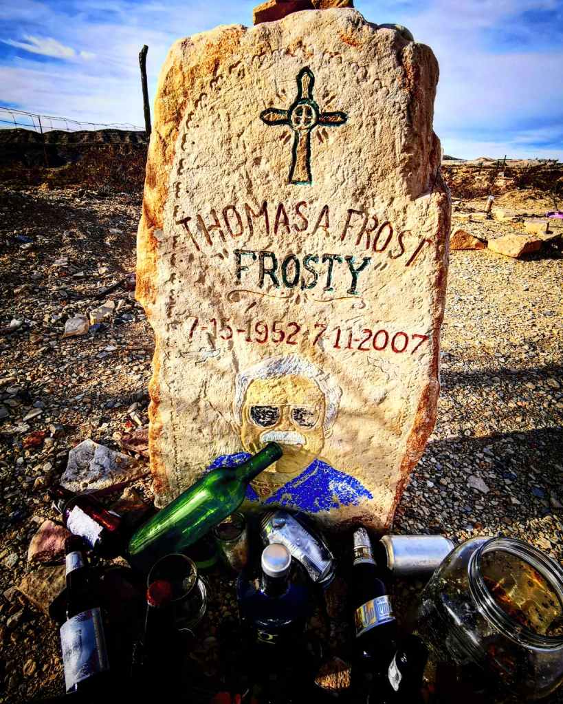 Je ziet ook nog duidelijk hoe Dia de Los Muertos afgelopen november hier gevierd is: op bijna alle graven staan theelichtjes en op de meeste graven liggen offers, meestal in de vorm van kwartjes of zelfs dollarbriefjes. Als je foto’s opzoekt over Dia de Los Muertos in Terlingua kan je ook zien hoe prachtig dit gevierd wordt. Mensen komen dan samen rond zonsondergang om hun overleden familieleden en vrienden te eren. Iedereen is prachtig verkleed en geschminkt, en er wordt een groot kampvuur gemaakt waarrond de mensen eten en drinken en herinneringen ophalen, terwijl lokale muzikanten voor de muziek zorgen.