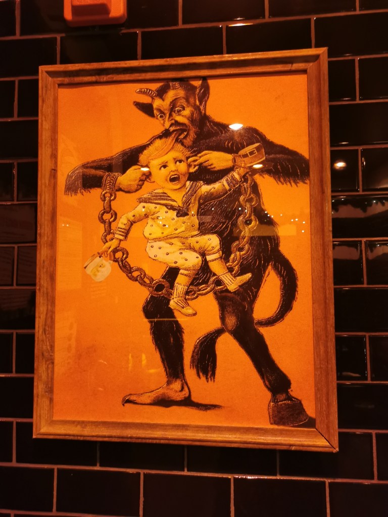 In de toiletten zelf hangen tekeningen van de akelige demon Krampus die stoute kinderen foltert.