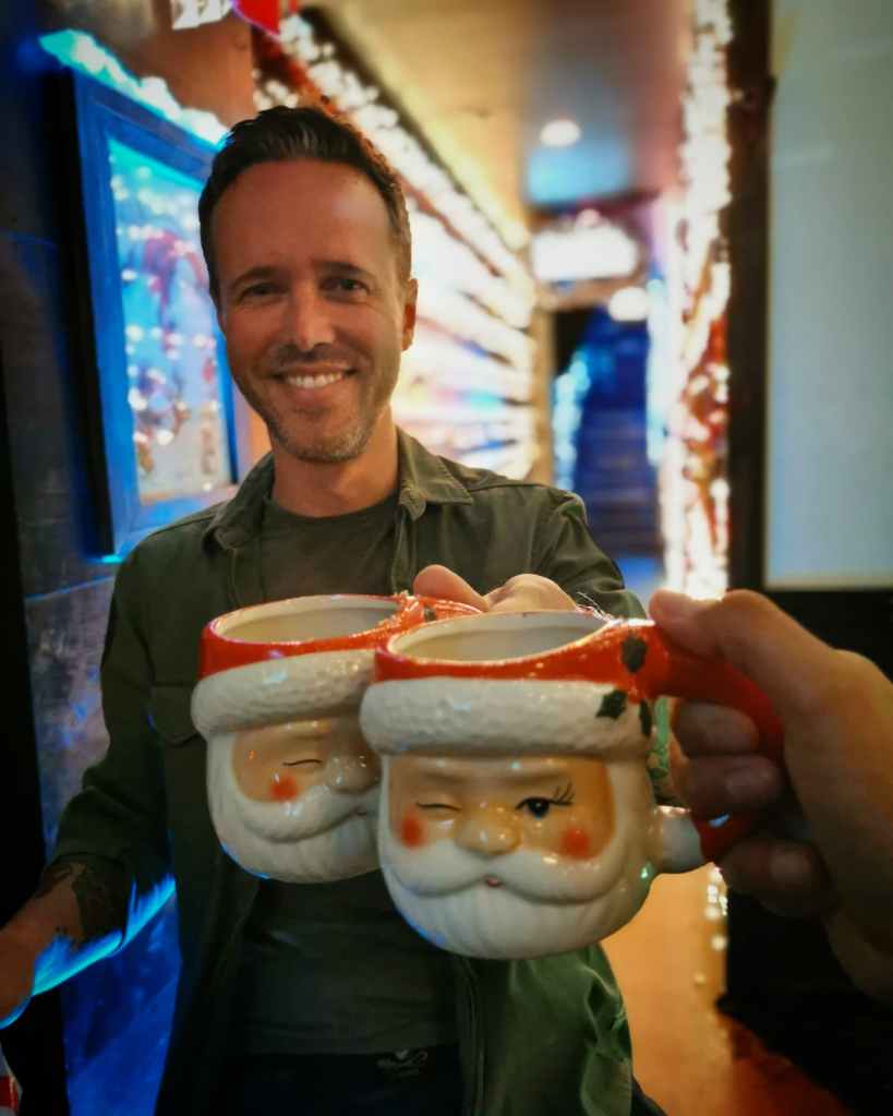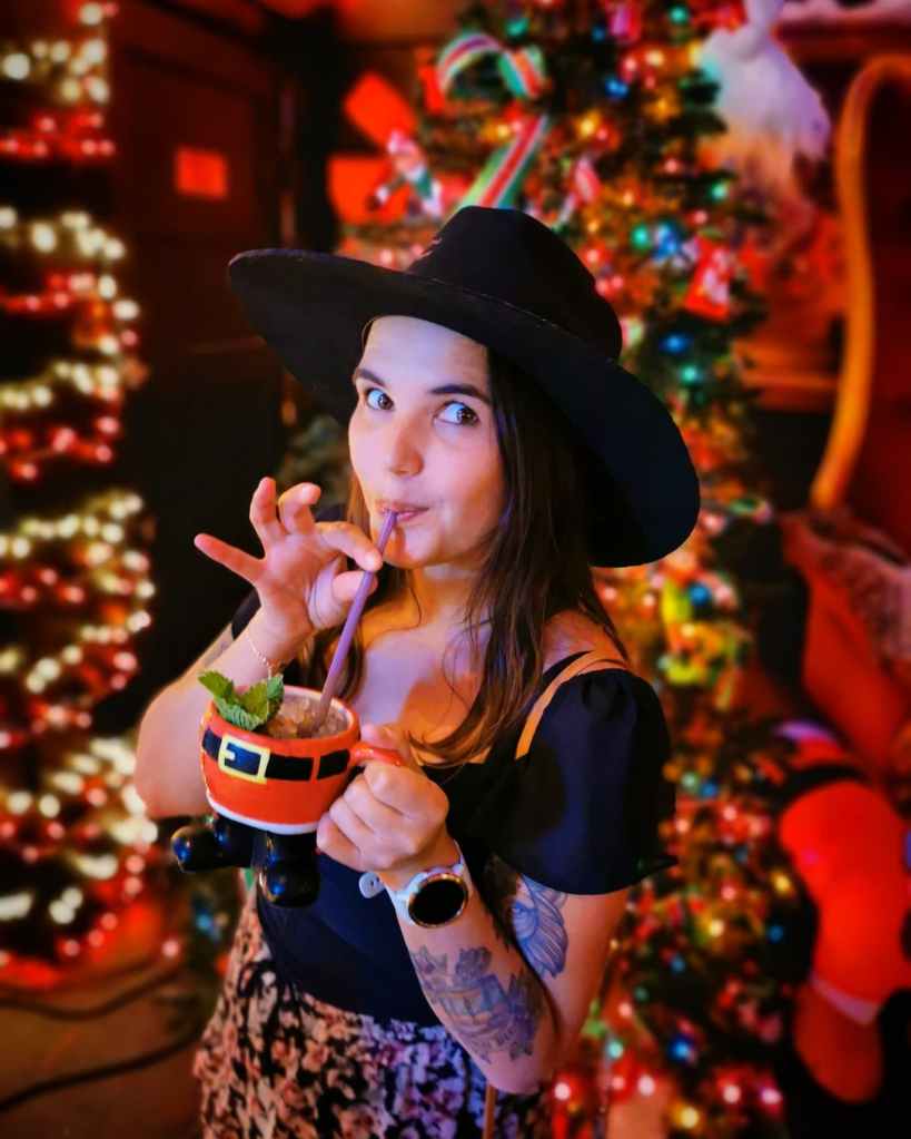 Het is even aanschuiven om binnen te geraken en de cocktails zijn prijzig, maar het is het wel waard. De bar telt twee verdiepingen en elk stukje muur, elk hoekje, is prachtig gedecoreerd en je waant je in de vertrekken van de Kerstman himself. Alles hangt vol decoraties, op de traptreden staat de tekst geschilderd van “I saw mommy kissing Santa Claus”, je kan een foto maken in de troon van de Kerstman en de gang naar de toiletten is versierd met lichtjes en talloze foto’s van krijsende kinderen op de schoot van de Kerstman, én de hilarische foto van een meisje dat haar middelvinger naar de camera opsteekt terwijl ze op de olijke man zijn schoot zit.