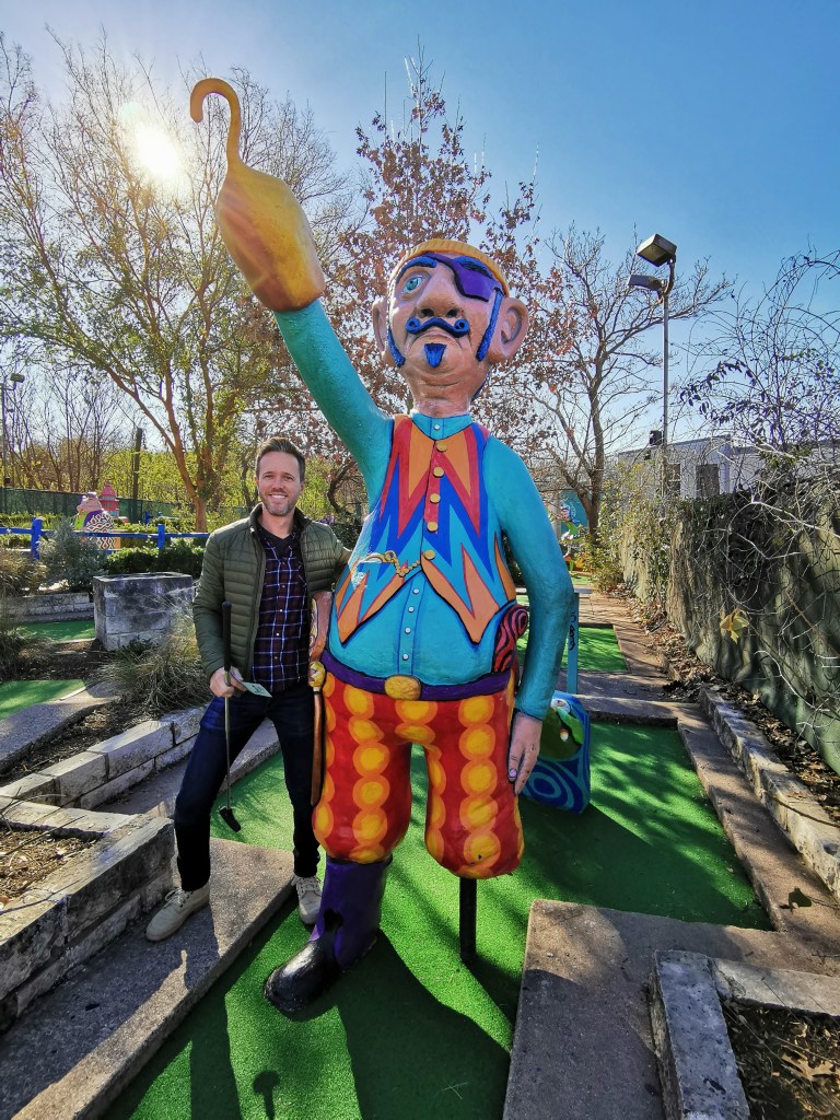 Nog leuk en grappig om te doen is de Peter Pan minigolf. Deze happy place bestaat al sinds 1948 en heeft twee verschillende parcours van 18 holes. Oost is makkelijk, West is iets moeilijker. Elke baan is vrolijk gedecoreerd met beelden zoals een reuze Peter Pan, een T-Rex, Captain Hook enzovoort. Ze zijn er trots op om één van die dingen te zijn die Austin “weird” maken en houden.