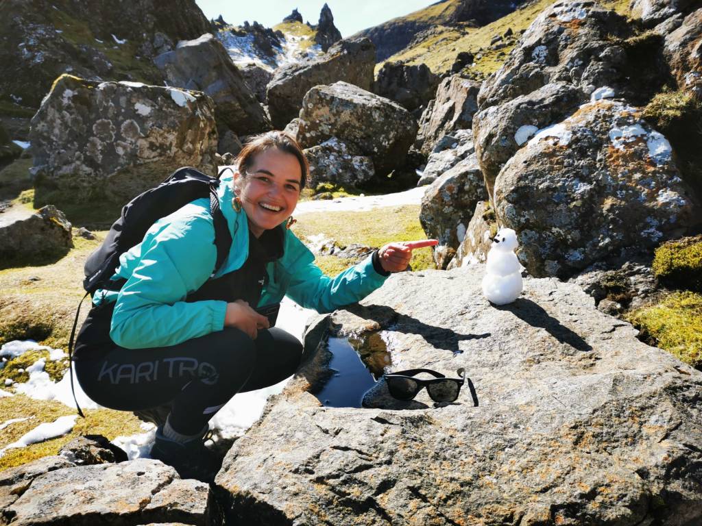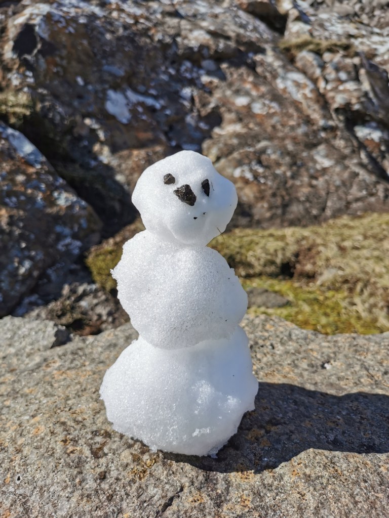 Er ligt nog hier en daar een heel klein beetje sneeuw, dus we maken meteen van de gelegenheid gebruik om een piepklein sneeuwmannetje te maken 😊