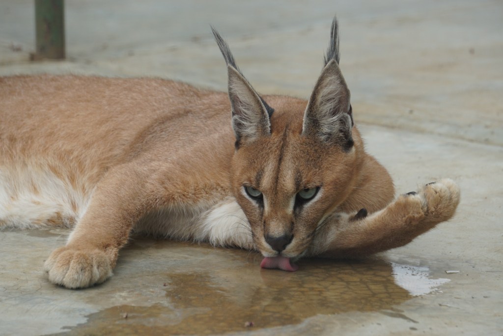 Andere dieren die hier wel opgevangen worden zijn onder andere een hele bende mangoesten (familie van het stokstaartje, heel grappige diertjes) een blesbok die Barry heet en je als een hondje volgt, bushbabies, 2 aardwolven, een aardvarken, wrattenzwijnen, 2 jonge nijlpaarden, 2 prachtige caracals… veel van deze dieren zitten hier omdat ze gered zijn uit de illegale huisdierenhandel. Het is echter niet omdat veel van deze dieren gewend zijn aan mensen dat ze niet meer vrijgelaten kunnen worden. Integendeel, zegt Katherine, het is verrassend, maar de meeste dieren kunnen uiteindelijk echt terug naar de vrije natuur. Enkel dieren die onmogelijk terug kunnen, zoals bijvoorbeeld een vogel die maar 1 vleugel heeft, worden geëuthanaseerd. Een visie waar niet iedereen het mee eens zal zijn, en ik heb het daar ook moeilijk mee, maar uiteindelijk is het wel begrijpelijk: Umoya Khalula wil absoluut geen zoo zijn en streeft er daarom naar dat alle dieren uiteindelijk weer vrij worden gelaten.
