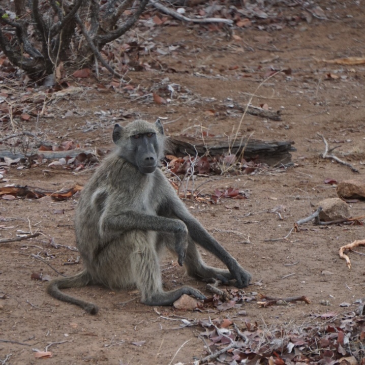Als we ’s ochtends om 5u naar het douchegebouw lopen, zien we dat de bavianen in de boom naast het gebouw stilaan wakker beginnen te worden en naar beneden beginnen te komen. Snel douchen is de boodschap, Sam is iets later en wordt achtervolgd door een nieuwsgierig alfamannetje. Wanneer hij merkt dat er geen lekkere etensgeur uit haar toilettas komt, geeft hij het op.