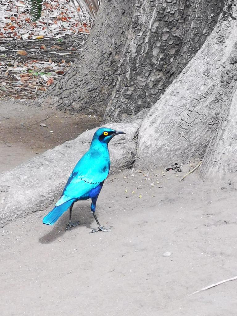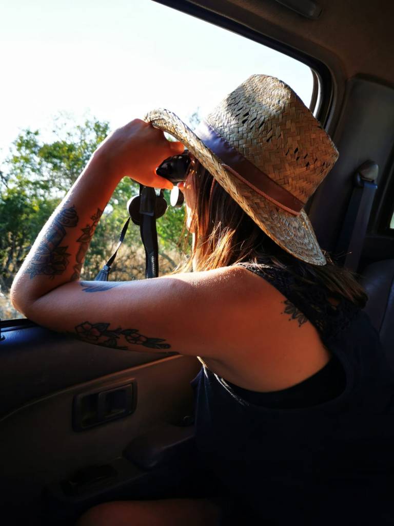 We zien onder andere een luipaard in een boom, een beeld dat op de wishlist staat van veel bezoekers. Door onze verrekijker kunnen we hem uitstekend observeren. Hij kijkt rustig terug naar ons en de andere auto’s. Recht in de gigantische National Geographic-waardige lens van de dame die naast ons geparkeerd staat. Hij lijkt echt te liggen poseren en we vinden het jammer dat de zoom van ons fototoestel niet ver genoeg reikt voor een scherpe foto, maar hem gewoon kunnen zien is al op en top kicken!