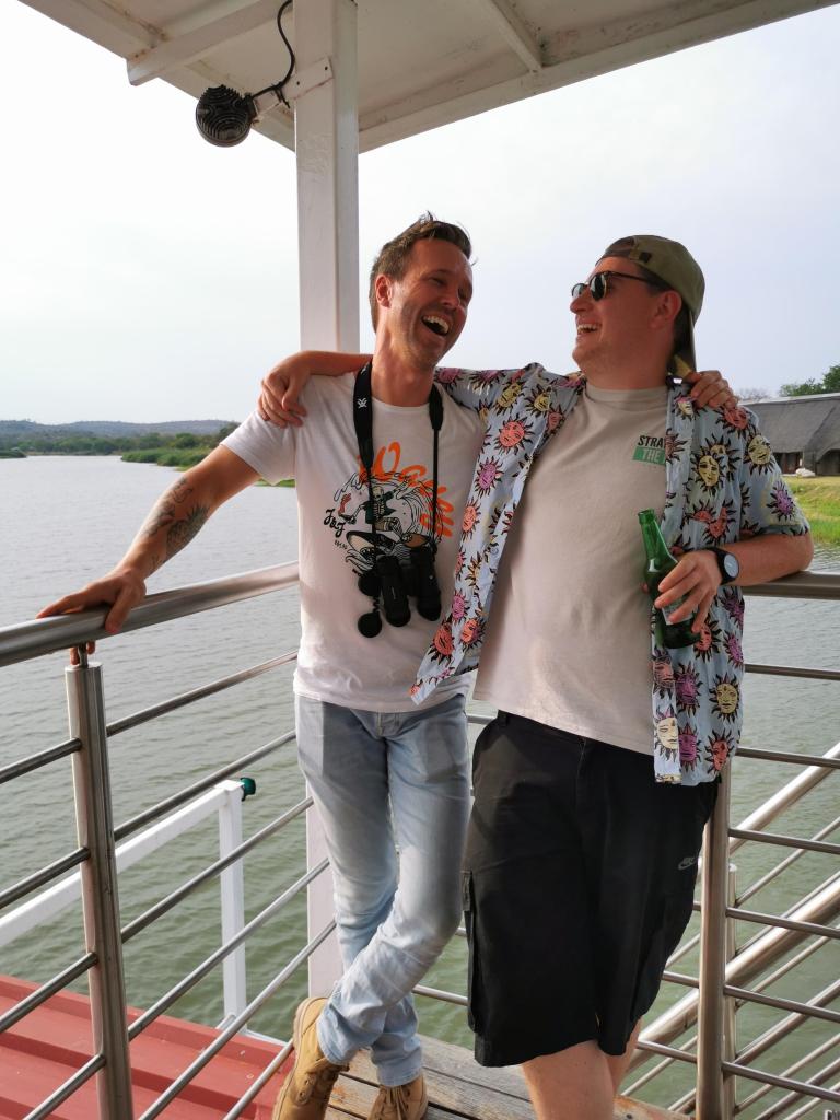 Nu we het zo in het licht zien, zien we pas echt hoe mooi de boottocht is. De boot vaart ons 2 uur rond op de Olifants rivier en we zien zoveel dieren. Olifanten, verschillende soorten antilopen, krokodillen, Afrikaanse visarenden… En het is zo’n rustgevende manier om deze wilde dieren van dichtbij te zien, heel anders dan wanneer je ze vanuit de auto ziet. Bovendien is de zonsondergang prachtig vanop het water. Een mooie manier om je laatste dag te spenderen. Met Jayne en Jack hebben we afscheid genomen van twee toffe mensen. Ze brachten allebei zo’n positieve vibe over Khaya Themba, Jayne met haar zonnig karakter, Jack met zijn droge humor. We zullen hen missen, maar we hebben al plannen gemaakt voor een reünie, ooit.