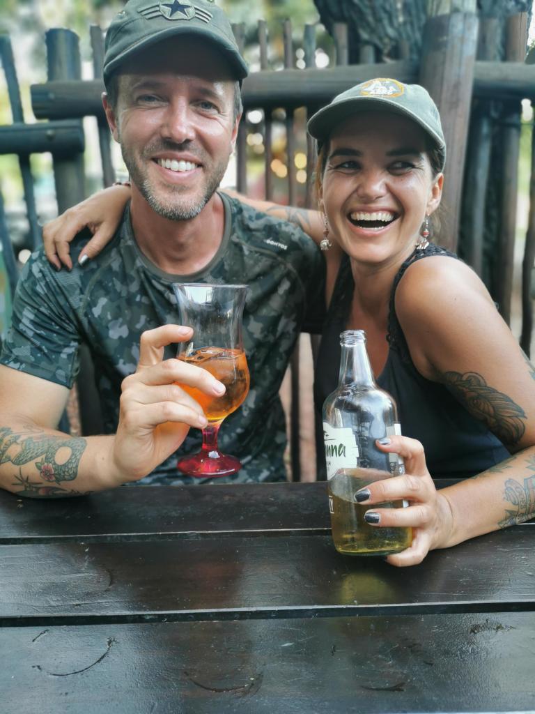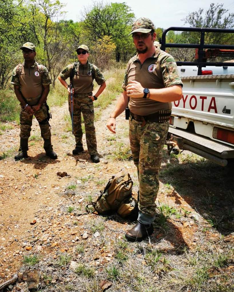 We worden terug begeleid door de bush naar het dichtstbijzijnde pad, waarbij we goed moeten opletten waar we lopen, want op dit heetste moment van de dag zoeken dieren beschutting dicht tegen de grond onder struiken. Op het pad rusten we uit in een plekje schaduw tot de auto’s er zijn om ons op te halen. De mensen van PNHC besluiten dat we allemaal een koud biertje verdiend hebben in een bar in Phalaborwa. De meeste leden van de organisatie zijn in camouflage kleding, sommigen dragen hun geweren mee naar binnen, anderen hebben gigantische messen aan hun riem hangen. De mensen in de bar moeten gedacht hebben dat we een groep jagers waren, terwijl het tegendeel gelukkig waar is!