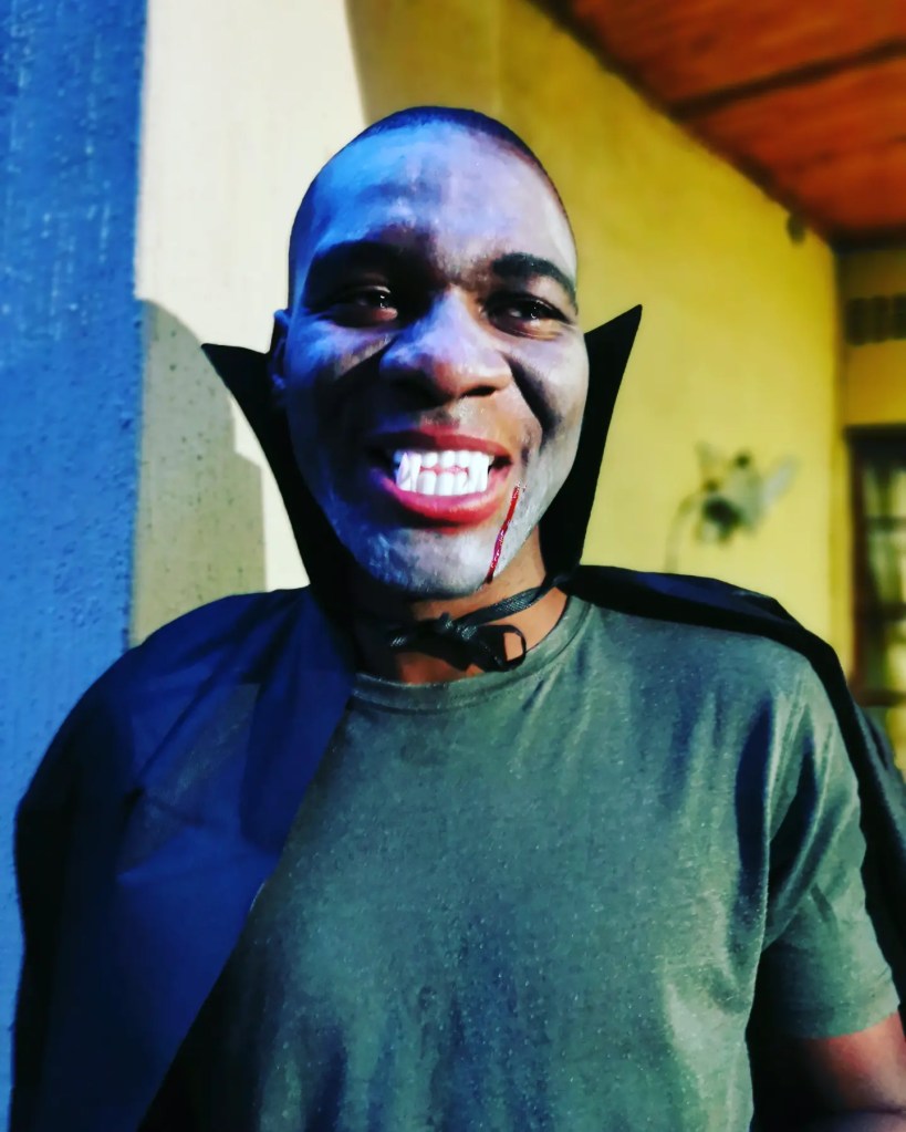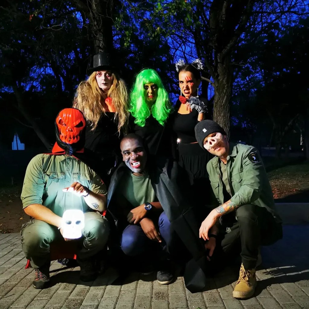 Ondanks het feit dat we met weinig zijn, besluiten we op maandag 31 oktober een Halloween feestje te doen. We zijn maar met z’n zessen: wijzelf, Tracey, Sam, Masuku en Alex. Een bescheiden groepje maar het is een succes. Iedereen heeft zich verkleed, Tracey heeft een leuke Halloween quiz in elkaar gestoken en we spelen nog een spel waarbij we geblinddoekt de “treats” uit potten vol ondefinieerbare viezigheid moeten vissen. Promise heeft haar beste kunsten uit de kast gehaald want binnen staan heerlijk geurende schotels met al haar lekkerste gerechten: chakalaka, spinazie in pindasaus, geroosterde butternut… Zalig!