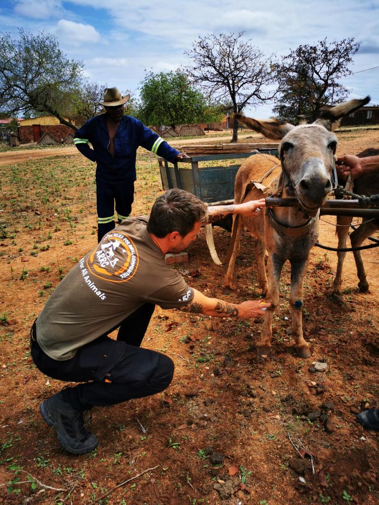We zien vandaag bijvoorbeeld verschillende honden met tvt. Maar jammer genoeg kunnen we enkel de dringendste gevallen meenemen. De kennels op de farm zullen binnenkort een toevluchtsoord bieden voor 8 honden, maar zolang ze niet af zijn moeten we roeien met de riemen die we hebben en kunnen we niet veel honden plaatsen. Dus vertellen we de baasjes dat ze met hun hond moeten langskomen op woensdag of donderdag, wanneer we in Selwane zijn voor het kindproject of het ezelproject, zodat we de situaties kunnen opvolgen en ingrijpen indien het echt dringend is. De vraag is altijd of ze dat ook zullen doen.