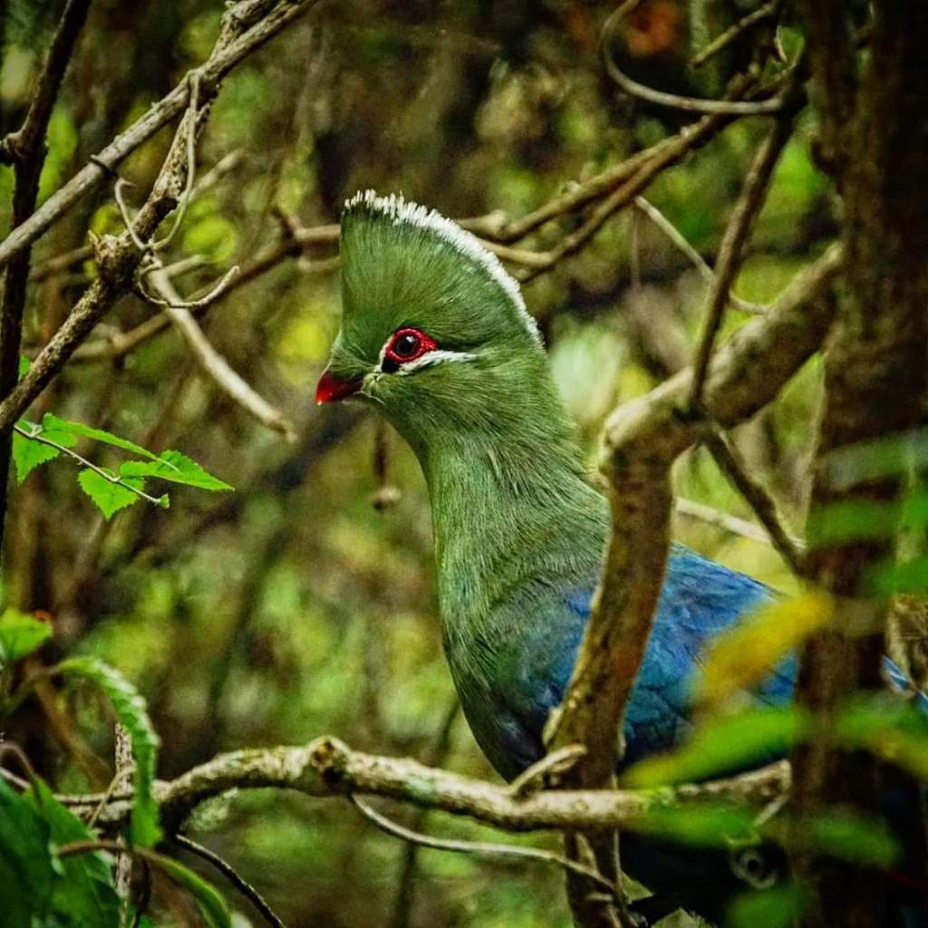 Het hoogtepunt van deze wandeling was voor ons het zien van onze eerste Knysna Loerie! De internationale naam voor deze prachtige vogel is de “Knysna Toerako”, maar geef toe dat de Afrikaanse benaming “Loerie” veel leuker klinkt.