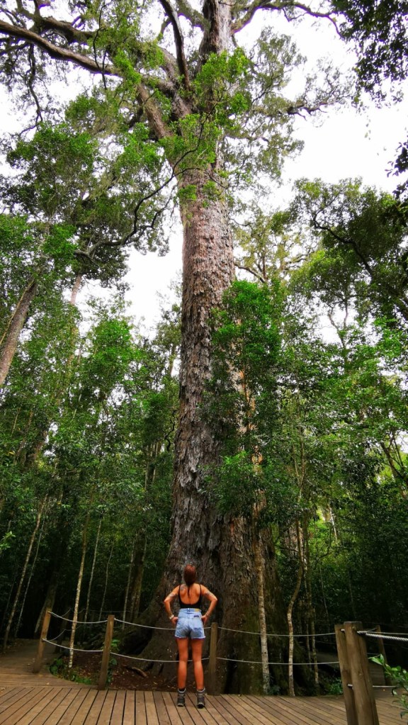 Voor een veel eenvoudigere en kortere wandeling kan je naar de “Big Tree” gaan kijken.  Deze Geelhout reus is zo’n 1000 jaar oud en je kan een vlakke trail ernaartoe volgen.  Na 500 meter kom je al bij de boom.  Indrukwekkend om te zien, maar je zal hier zeker niet alleen zijn.  Het is wel op deze plek dat we onze eerste kameleon zagen, dus we zijn blij dat we de wandeling gedaan hebben.